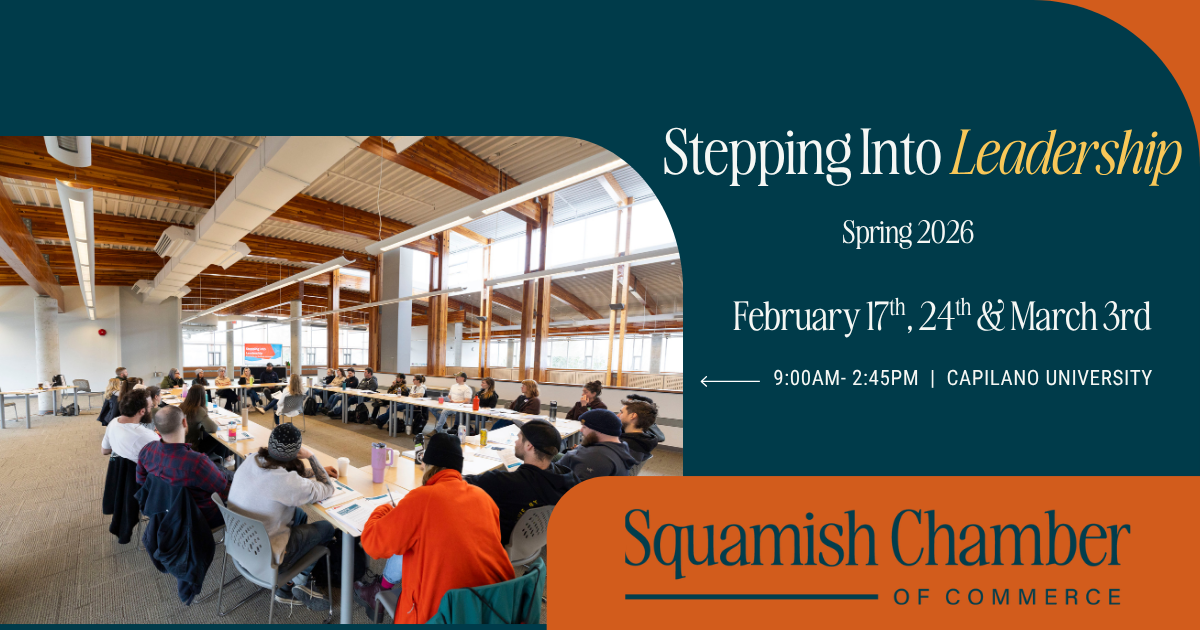 2026 Stepping Into Leadership Spring Cohort Stepping Into Leadership is designed for current and aspiring supervisors, managers, and business owners wanting to develop their workplace leadership skills. This three-day, six-session program provides valuable guidance and tools to help you operate all aspects of your business - ultimately growing your skills to become a more effective leader.The course will cover three distinct areas of workplace leadership:Leadership Skills | elevate yourself as a professional and inspiring leaderPeople Management | build and manage a strong and engaged team through coaching, effective performance management, productive conflict strategies and communicationBusiness Skills | key tools to help with productivity, goal setting, decision making, time and change management Participants must have completed a DiSC personal assessment to participate in the course within the last 12 months. DiSC is a personal assessment tool used by more than a million people every year to help improve teamwork, communication and productivity in the workplace. Organizations and facilitators use DiSC as tools to help ignite cultural change and inspire lasting behaviour that positively shapes their workface. All participants who complete the course will receive a Squamish Excellence Certificate of Completion. You will become a more confident, productive and strong leader. Grow your career, grow yourself. Tuesday, February 17th (9:00am - 2:45pm | with lunch break)Tuesday, February 24th (9:00am - 2:45pm | with lunch break)Tuesday, March 3rd (9:00am - 2:45pm | with lunch break)About Your Facilitator:Christine McLeod has been our lead facilitator for Stepping Into Leadership since 2018 and, to date, has inspired well over 100 supervisors and managers in Squamish to become the best leaders they can be for their teams, their business, and their community. What makes Christine such an effective facilitator is her passion for all things Squamish, her 3 decades of operational and management experience leading teams, and her inspiring ability to always make the topics covered operationally relevant to the audience in the room. We are delighted to have Christine back for another Stepping Into Leadership series this fall and have her lead important discussions with participants about how to tackle the current issues facing Squamish teams.